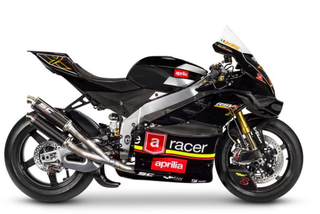 La speciale livrea Perla Nera attinge alla storia del Marchio, con il nero lucido e le finiture grafiche che sono un chiaro omaggio alla RS 250 di Max Biaggi, moto con la quale il pilota vinse tre campionati del mondo consecutivi, dal 1994 al 1996, nella classe 250.