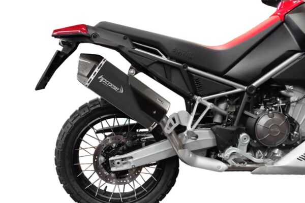 Per Aprilia Tuareg 660, HP CORSE propone due linee di scarichi “Rally” nel pieno rispetto delle normative vigenti Euro 5: SP-1 e SPS CARBON entrambi con un involucro di 350 mm di lunghezza e due collettori Racing 2in1 (passaggio alto e basso) destinati esclusivamente ad uso in circuito chiuso (non omologati)