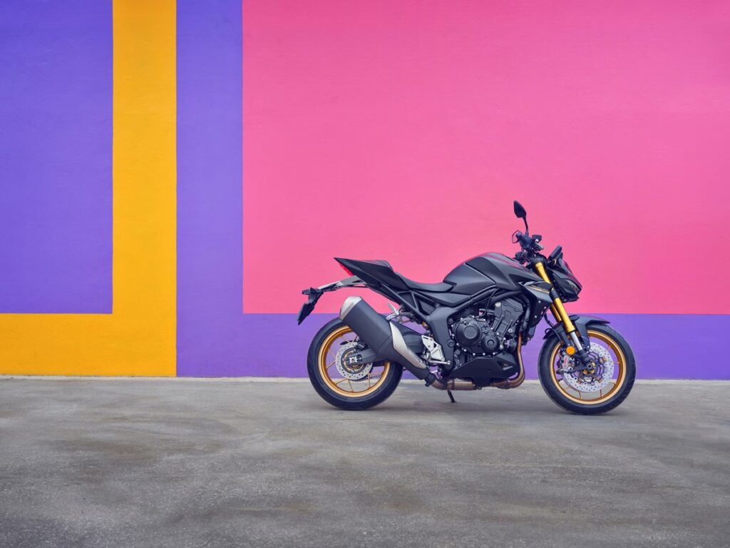 La nuova CB1000 Hornet SP 2025 è disponibile nella sola colorazione ‘Mat Ballistic Black Metallic’, con cerchi in ‘Desert Gold Metallic’ e foderi forcella anodizzati in color oro.