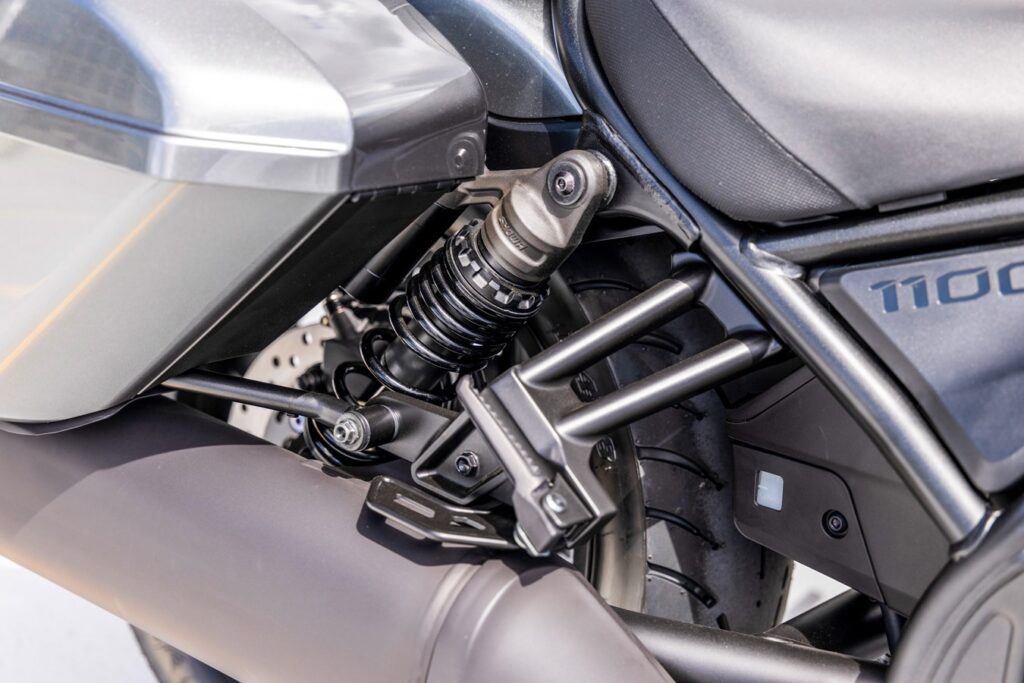Invariata anche la ciclistica, con forcella a cartuccia da 43 mm, ammortizzatori con serbatoio separato (“piggyback”) e pinza freno anteriore a quattro pistoncini ad attacco radiale.