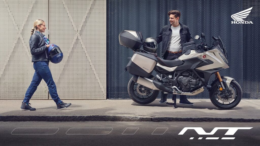 Honda presenta la nuova NT1000 2025, che per il nuovo anno è disponibile anche in versione DCT Electronic Suspension. La crossover della Casa di Tokyo si aggiorna nell’estetica, più moderna, nella meccanica, con un motore più ricco di coppia, e nell’elettronica, dove fa il suo debutto la piattaforma inerziale. Ma andiamo con ordine. La NT m.y. 2025 presenta un’estetica aggiornata, più moderna, enfatizzata dal doppio faro anteriore con luci diurne DRL. Rivisti anche i deflettori e il parafango anteriore, allungato. Il parabrezza adesso può essere regolato con la sola mano sinistra, mentre la sella è più ampia e offre maggior supporto durante i viaggi. Le valige laterali, di serie, sono state riviste nei volumi e ampliate così da ospitare un casco integrale ciascuna.