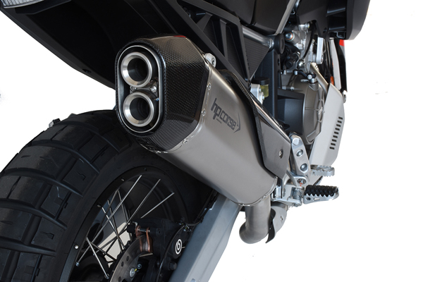 SPS Carbon 350: ha linee pure ed essenziali, un involucro di 350 mm di forma ottagonale dotato di un’uscita ovale con beccuccio idroformato avvolto da un bellissimo fondello in fibra di carbonio. Dall’interno del beccuccio emergono le due uscite rotonde dei gas di scarico con i due DBK. Lo scarico SPS CARBON dedicato alla Tuareg 660 riesce ad integrarsi alla perfezione nel lay-out stilistico della Off Road di casa Aprilia. Il raccordo è Slip-On con finitura satinata e una cover in acciaio protegge sia il raccordo, sia il passeggero da eventuali contatti indesiderati. SPS CARBON ama l’emozione dei grandi spazi e le strade che si perdono oltre l’orizzonte. Ideato nel Centro R&D di Bologna, la nuova creatura HP CORSE nasce forte, capace di resistere alle situazioni più impegnative e ai tanti chilometri percorsi per accompagnarvi attraverso strade, sentieri, passi di montagna e deserti di tutto il mondo. Testato per oltre un anno al banco prova e sui percorsi più impegnativi, è omologato Euro 5. Disponibile in Titanio (euro 890,60, IVA incl.), Acciaio Nero (euro 878,40, IVA incl.), Acciaio Satinato (euro 829,60, IVA incl.)