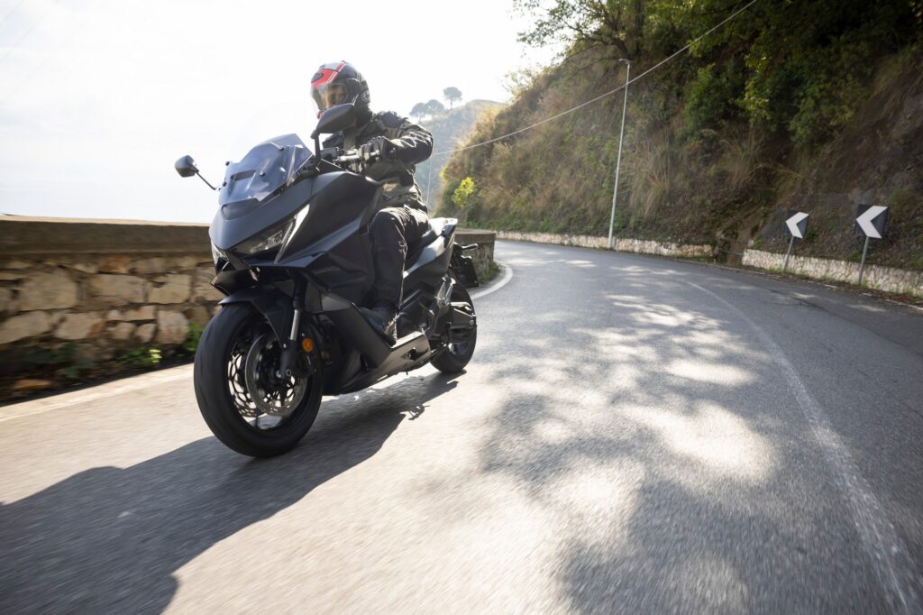 Tra le miglior doti di questo maxiscooter troviamo il suo essere camaleontico, In città infatti è un perfetto alleato nella quotidianità, offre un generoso raggio di sterzata (2,9 metri dichiarati grazie alla nuova carena, contro i già ottimi precedenti 3.1), un’ottimo bilanciamento dei pesi (236 kg dichiarati) oltre ad una gestione del comando del gas e dell’intervento del DCT davvero a punto. Nessun problema nelle manovre a bassa velocità, nelle curve strette o nelle inversioni a U pur con entrambi i piedi sopra la pedana.